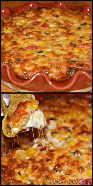 Are you looking for a delicious appetizer for your next party or game day? Look no further! This fiesta corn dip hits all the checks…yummy, easy and a huge hit every time! To enhance this dip, try using fresh roasted corn instead of frozen. You can use my MOST AMAZING OVEN ROASTED CORN recipe! You can also play around with the cheeses and use any variety you love in place of Monterey Jack. Serve with with some tortilla chips or baked pita crisps for the perfect dippers. You may also enjoy Skillet Spinach Artichoke Dip.