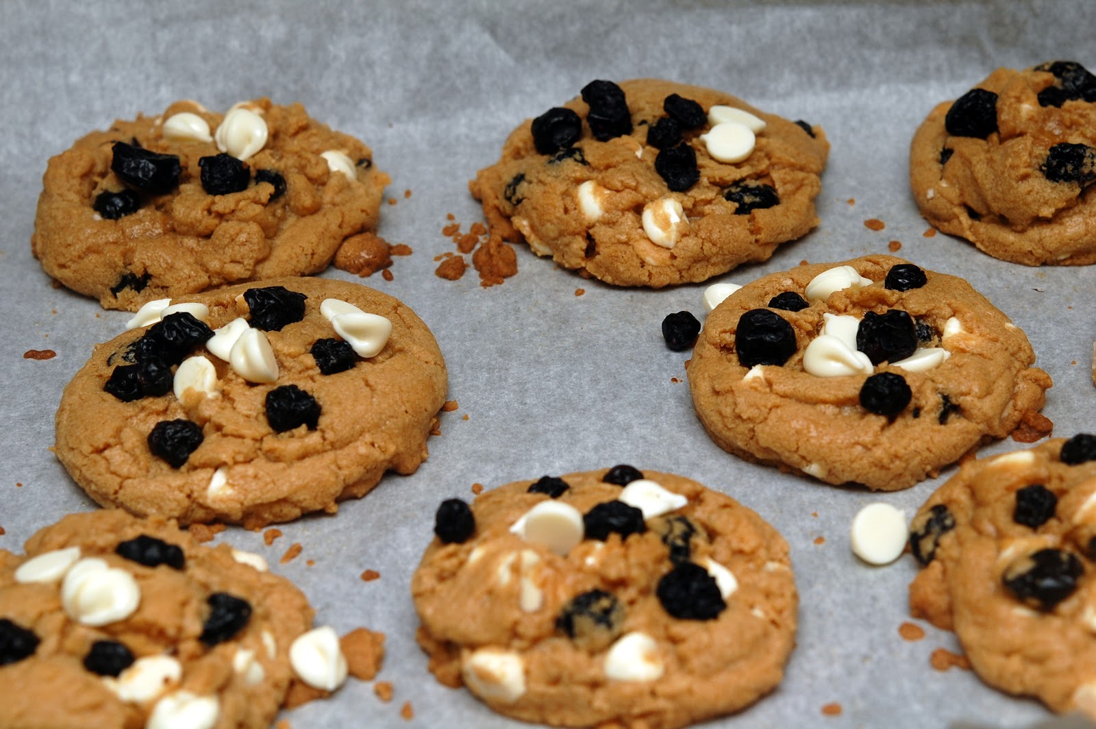 2. Add dry ingredients until just combined. Stir in white chocolate and blueberries.
