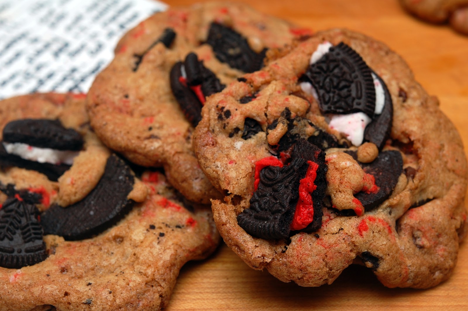 Bake 12-15 minutes until lightly browned. Transfer the baking sheets to wire racks and immediately press in some more oreo chunks. Cool the cookies on the sheets for at least 5 minutes. Transfer the cookies to the wire racks and coo.