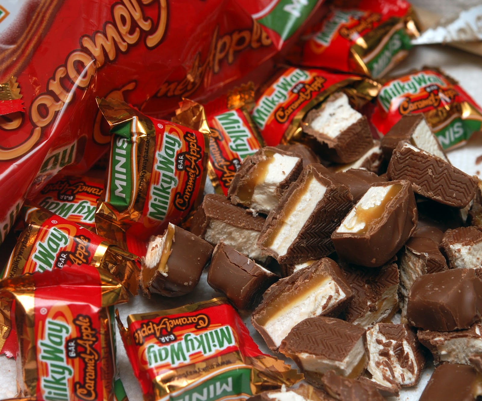 20 MINI CARAMEL APPLE MILKYWAY CANDIES, CHOPPED INTO QUARTERS