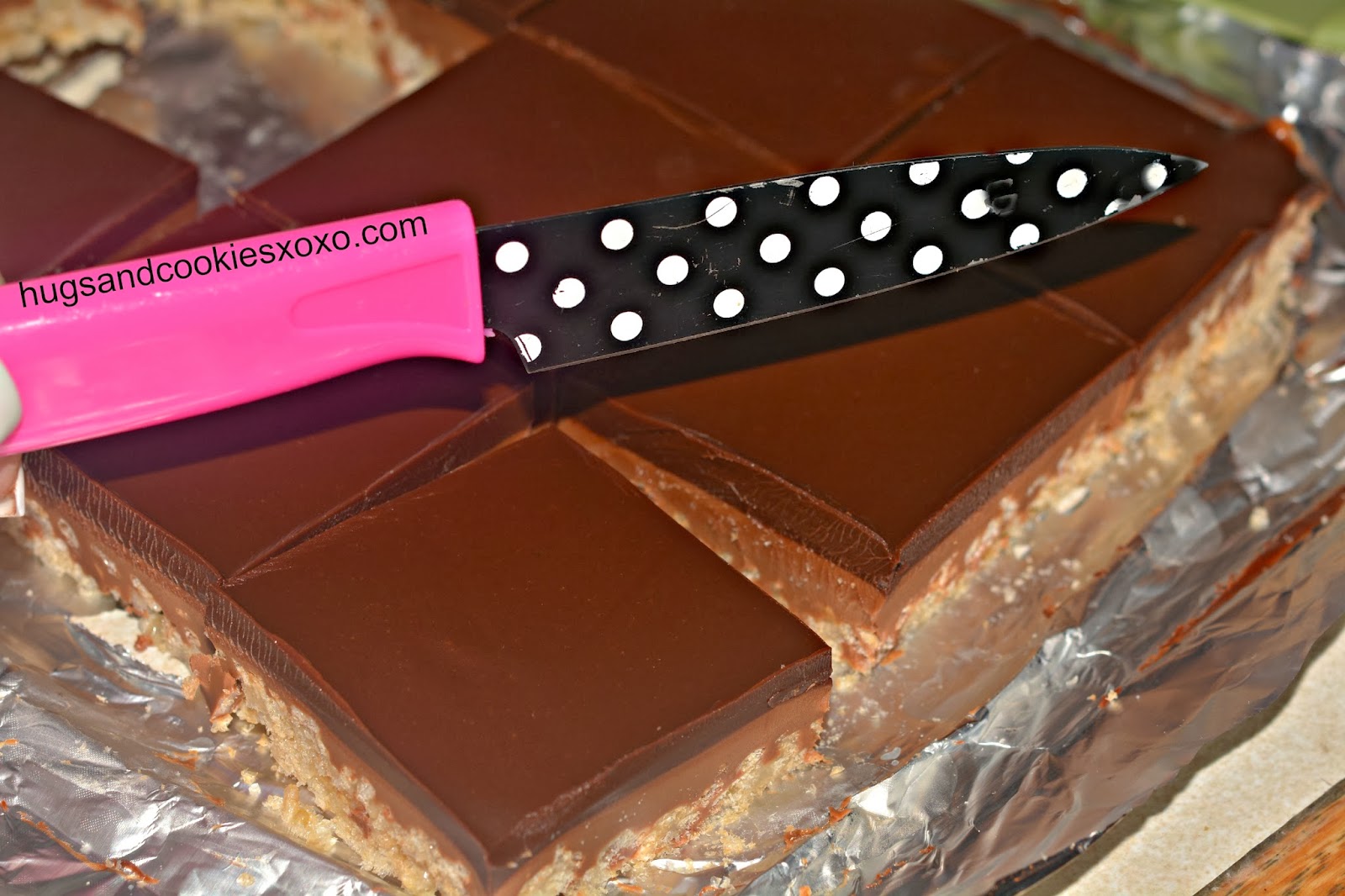 CARAMEL, PEANUT BUTTER KRISPY BARS TOPPED WITH THE BEST CHOCOLATE GLAZE!!!!