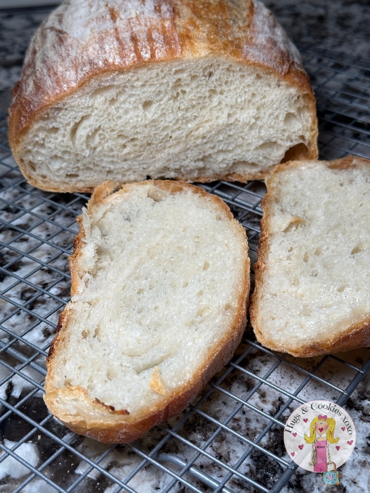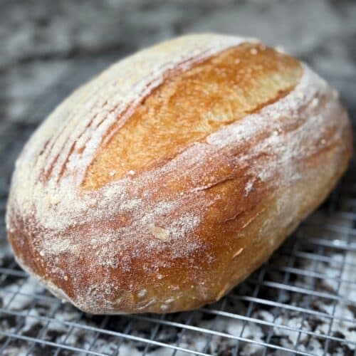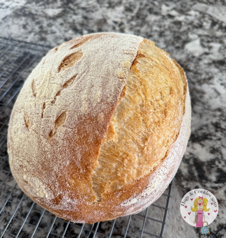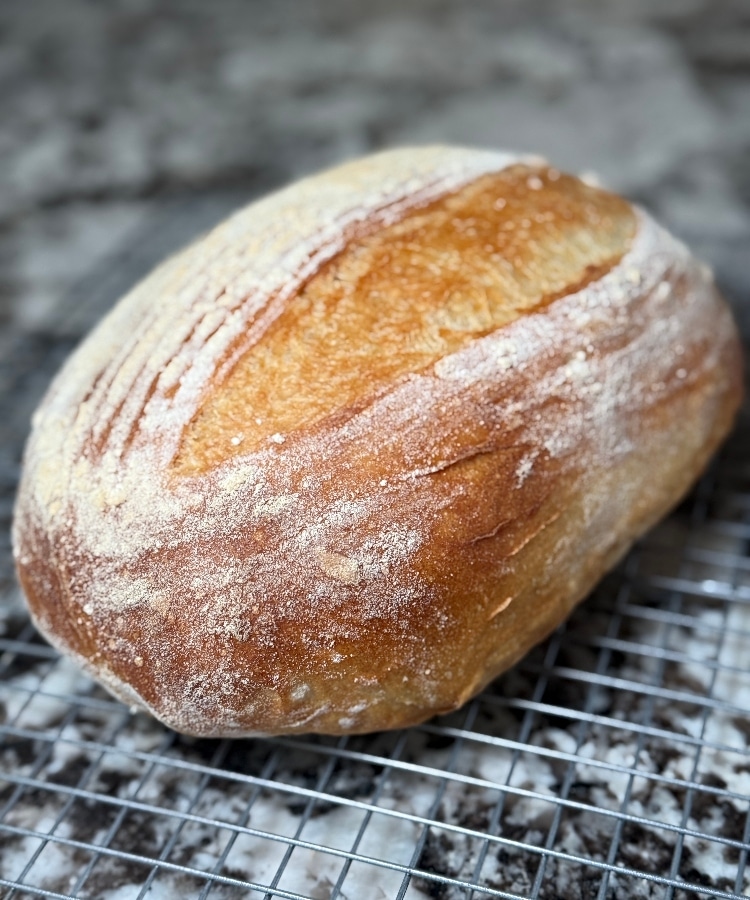 I thought I should try a bread with yeast and simplify my life. I did a drop of research and was so happy that everything I learned (and bought!!!) for sourdough works for regular breads, too! Duh! So, instead of grabbing a recipe from one of my 5,000 cookbooks I went to my new bestie…chat gpt! This recipe yielded the most amazing bread and I have since made about 6 loaves! It is so simple and so delish, Crusty outside with a super soft crumb. So I am naming it the epiphany chat gpt boule.