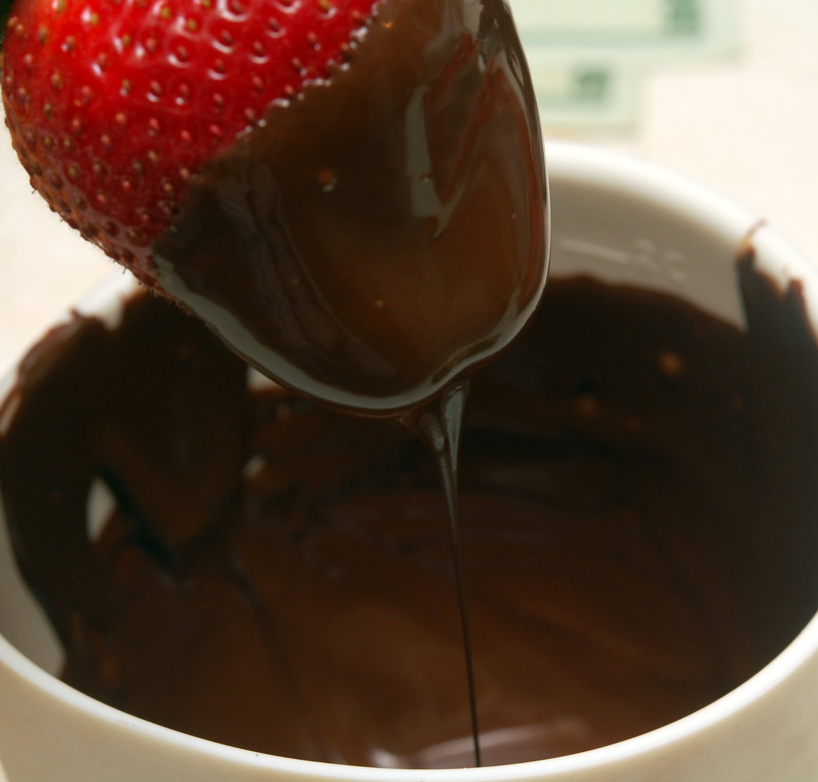 MELT DOWN SOME GHIRARDELLI BITTERSWEET GHIRARDELLI CHIPS IN THE MICROWAVE AND DIP, DIP, DIP!!!!