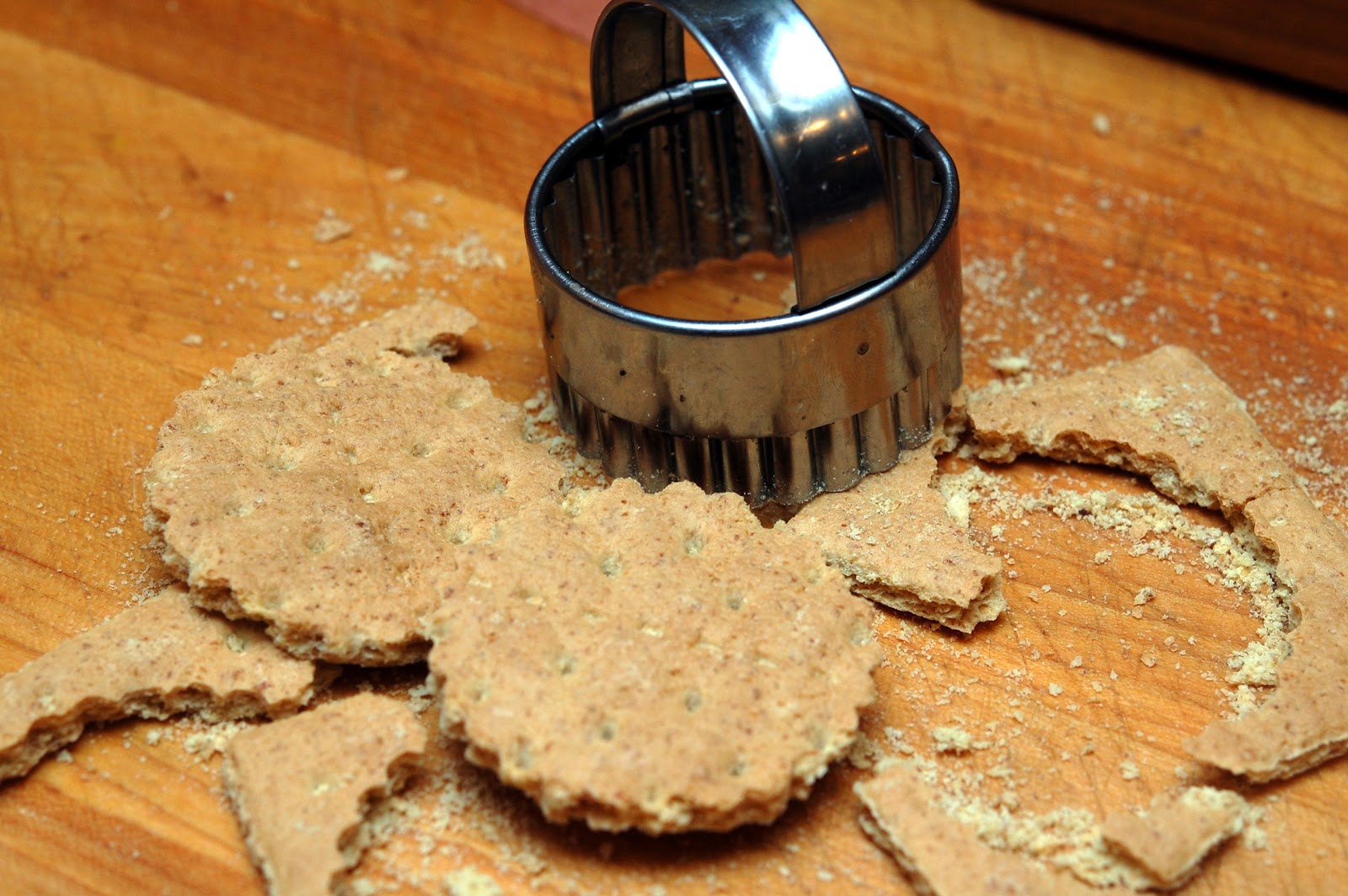 USE A COOKIE CUTTER TO CUT CIRCLES FROM YOUR GRAHAM CRACKERS.