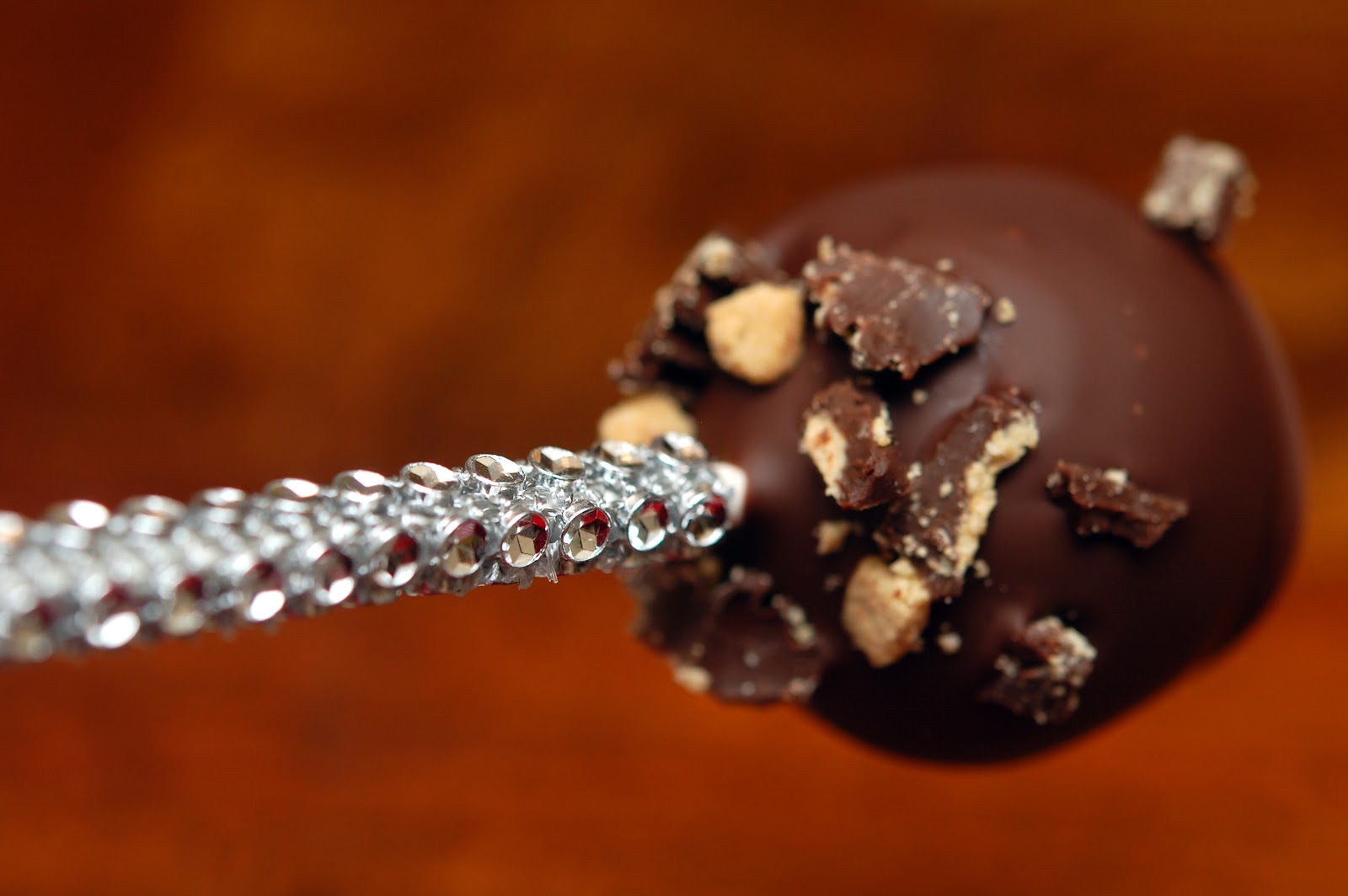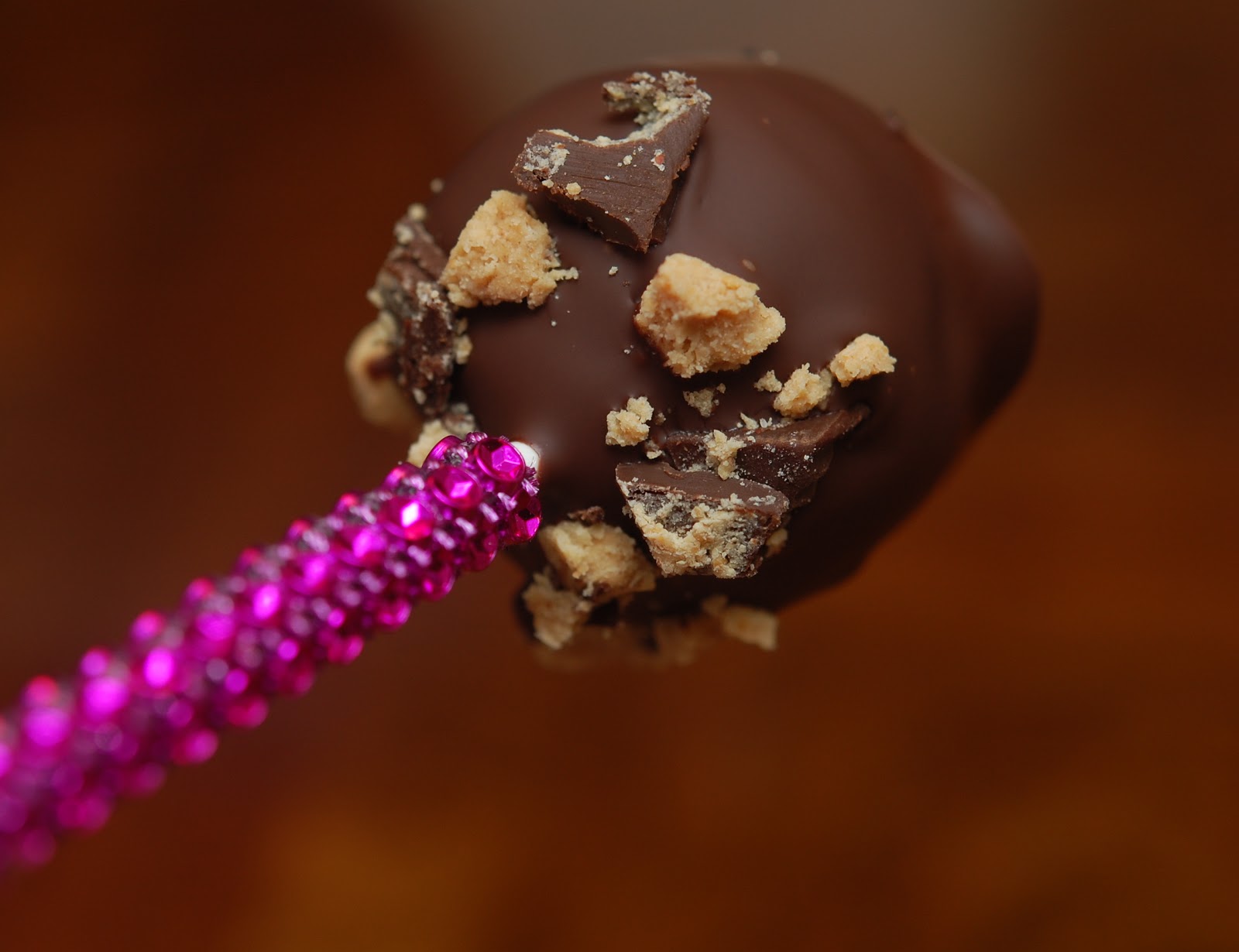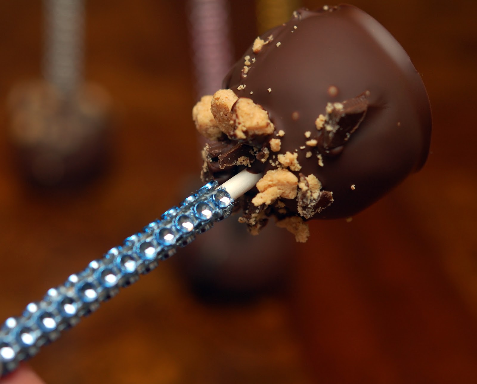 ELECTRIC MIX FIRST SEVEN INGREDIENTS AND ROLL INTO TRUFFLES. FOR “SURPRISE” ONES, DIVIDE BATTER. ADD CHOPPED OREOS TO HALF AND WRAP THE DOUGH AROUND MINI PB CUPS FOR THE OTHER HALF!! INSERT BLING STICKS. CHILL UNTIL FIRM. MELT CHOCOLATE CAREFULLY IN MICROWAVE AND DIP TRUFFLES. ADD TOPPINGS, CHILL UNTIL SET.