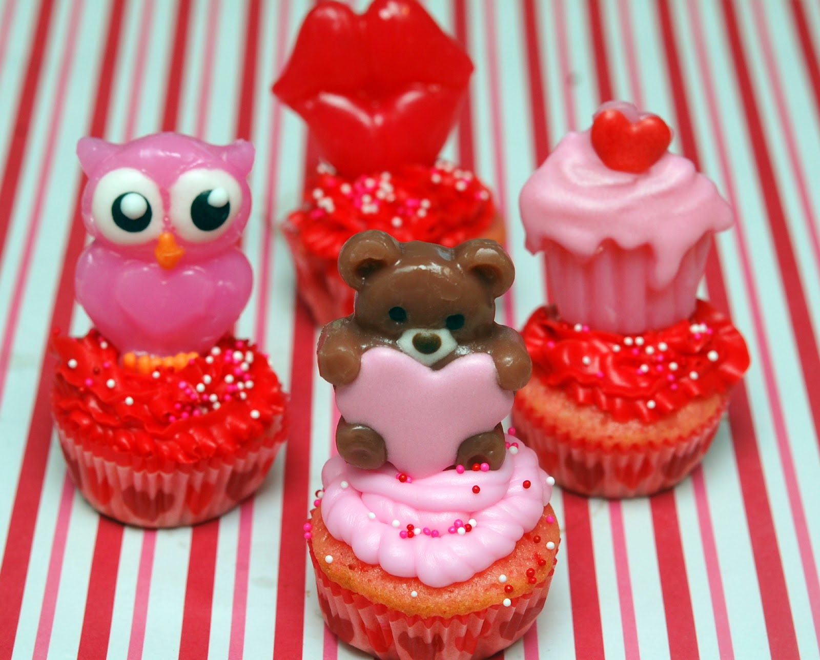 Simple, simple! Bake cupcakes (yup from a mix!!!) in mini liners. Frost and decorate with lollipops!!HAPPY HEARTS DAY!