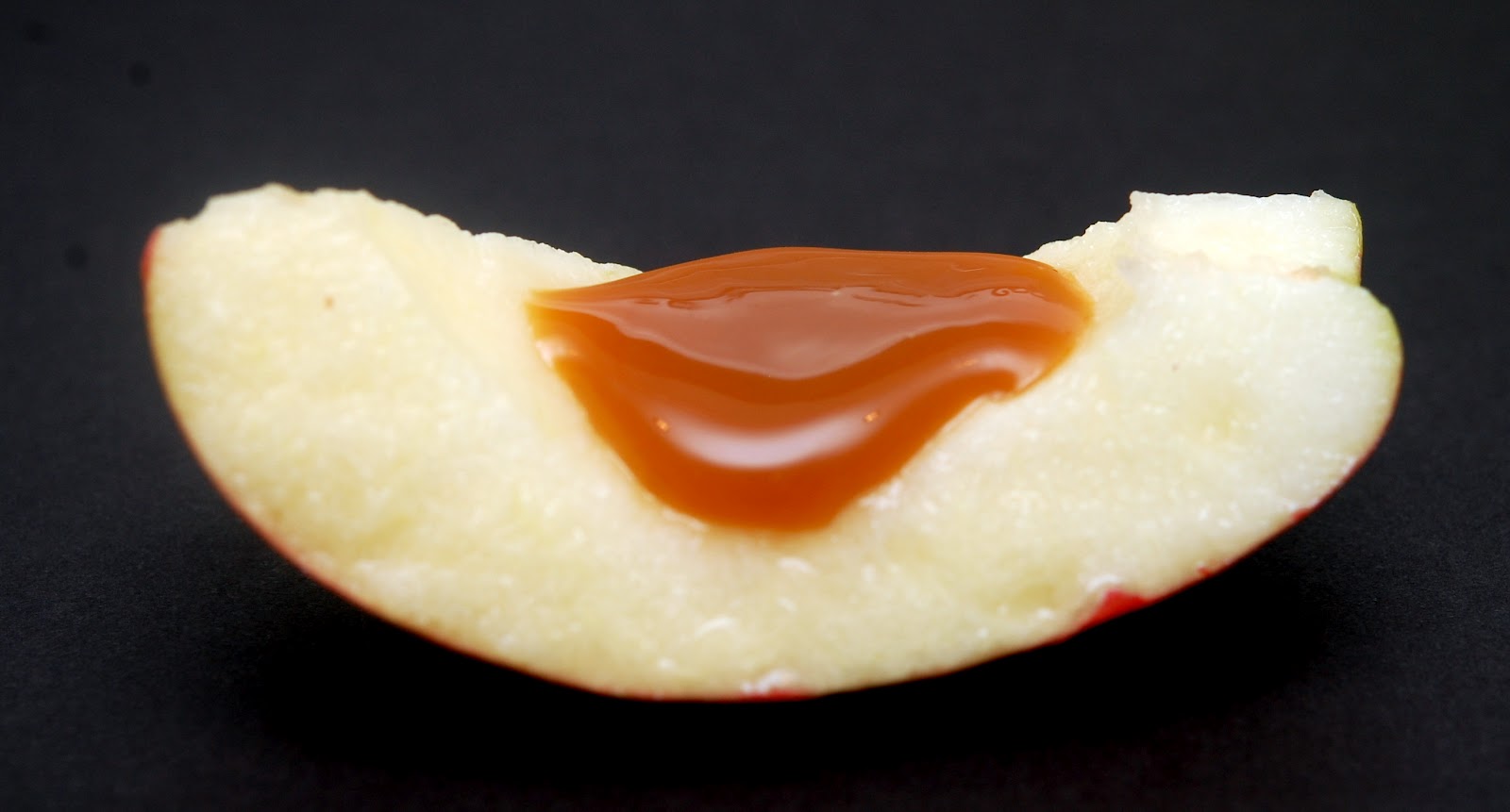 CUT A LITTLE INDENT TO MAKE ROOM FOR THE CARAMEL.
