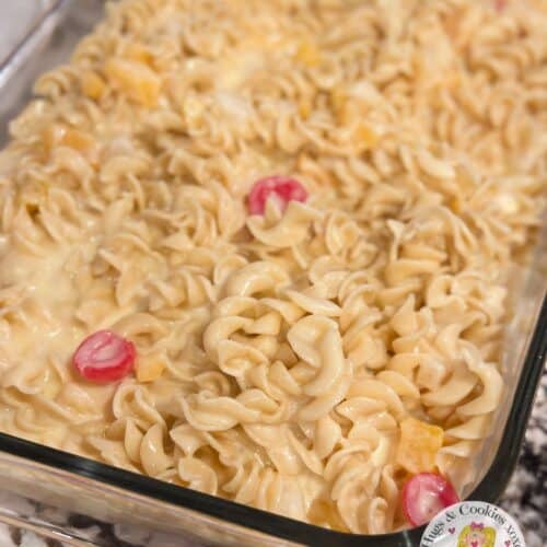 - Top with some crumbled Cornflakes and bake 45 mins at 350.