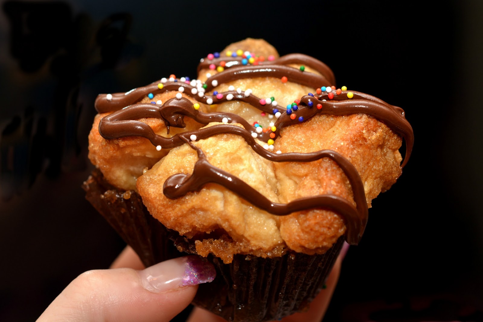 As soon as I saw her Mini Monkey Breads I realized I did not have anything like that on my blog! I own a monkey pan from Williams Sonoma but somehow (how could it be) monkey bread has not hit my blog….until NOW! I knew that was the recipe I had to make. I used liners in my tins and next time would probably omit them as the caramel seeps through the bottom. That’s easily corrected by spooning it over the tops once removed from the pan. I decided to push these over the edge a bit by drizzling on dark chocolate and tony sprinkles. Breakfast on the go has never tasted so good!