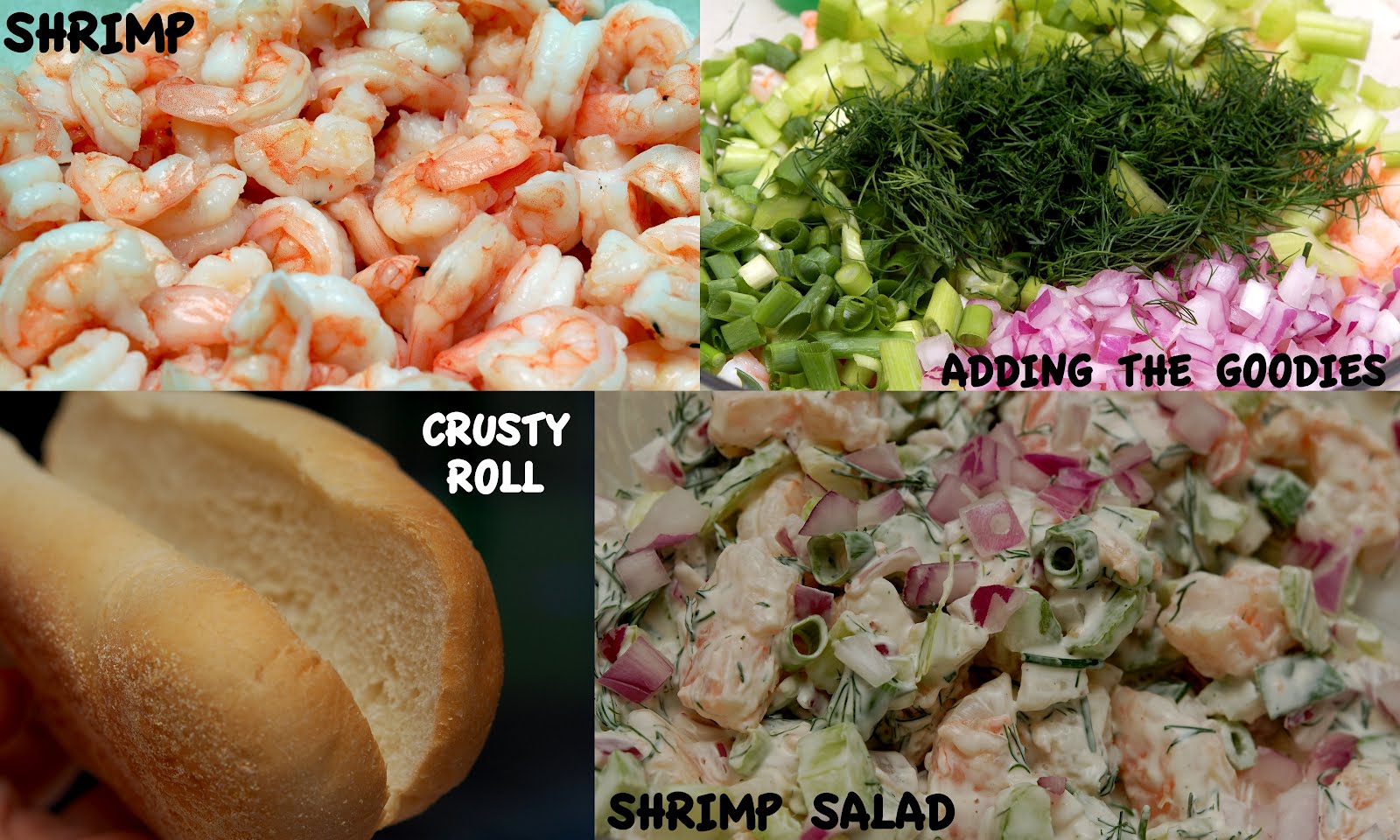 In a separate bowl, whisk together the mayonnaise, mustard, wine, 1/2 teaspoon salt, pepper, and dill. Combine with the peeled shrimp. Add the red onion, scallions and celery and check the seasonings. Serve or cover and refrigerate for a few hours. some crusty rolls and pile it on!!!!