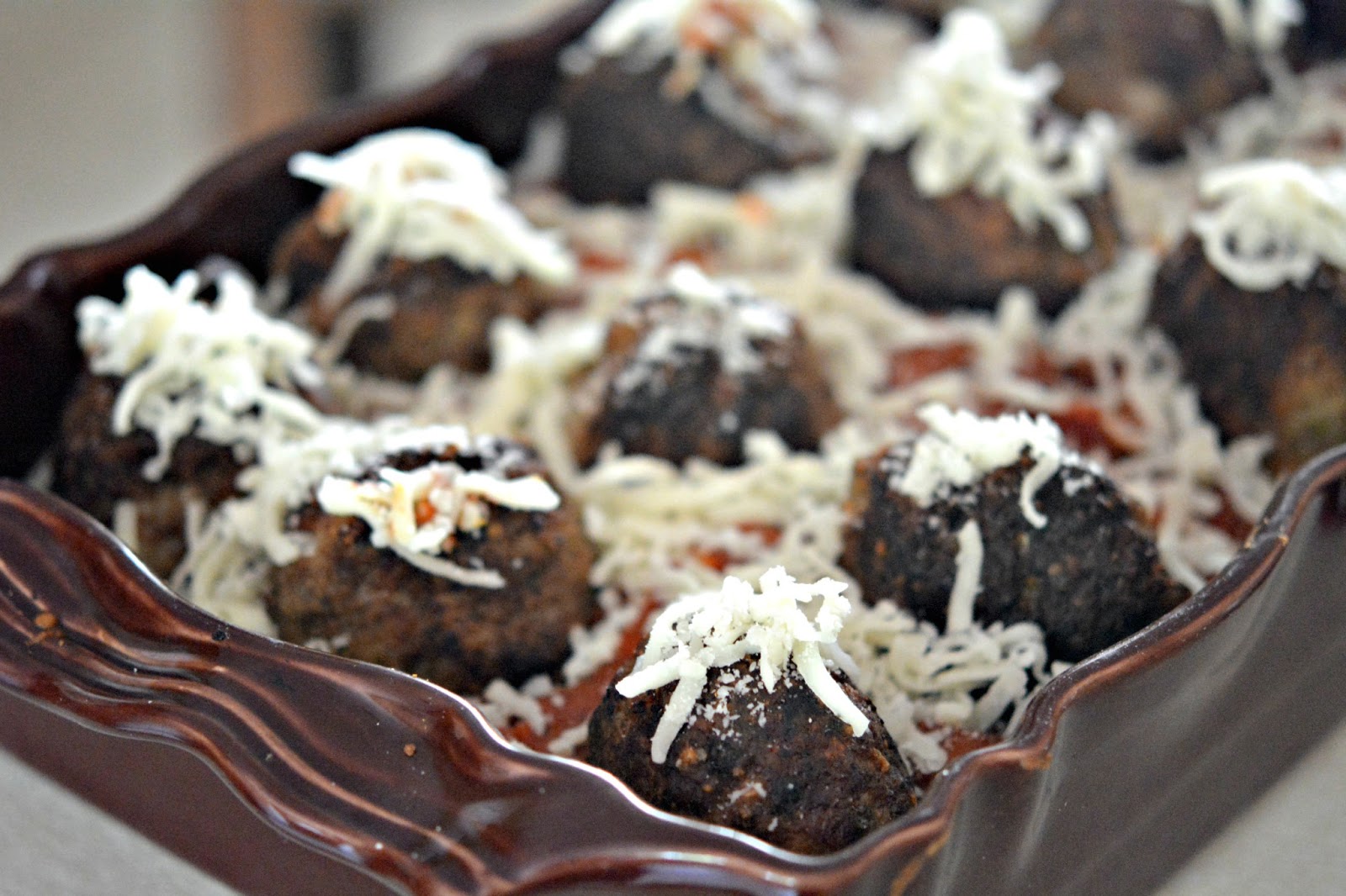 For the meatballs you will need:1 1/2 lbs of meatloaf mix (combo of pork, veal, beef),1/2 cup bread crumbs (I used Aleia’s gluten free)1 tsp pepper2 tsp garlic powder1 tsp salt1 egg1/2 cup grated Parmesan1 lb chunk of mozzarella cheese (I was too lazy to go to the store for this so I used shredded mozzarella-it worked out perfectly!!!)