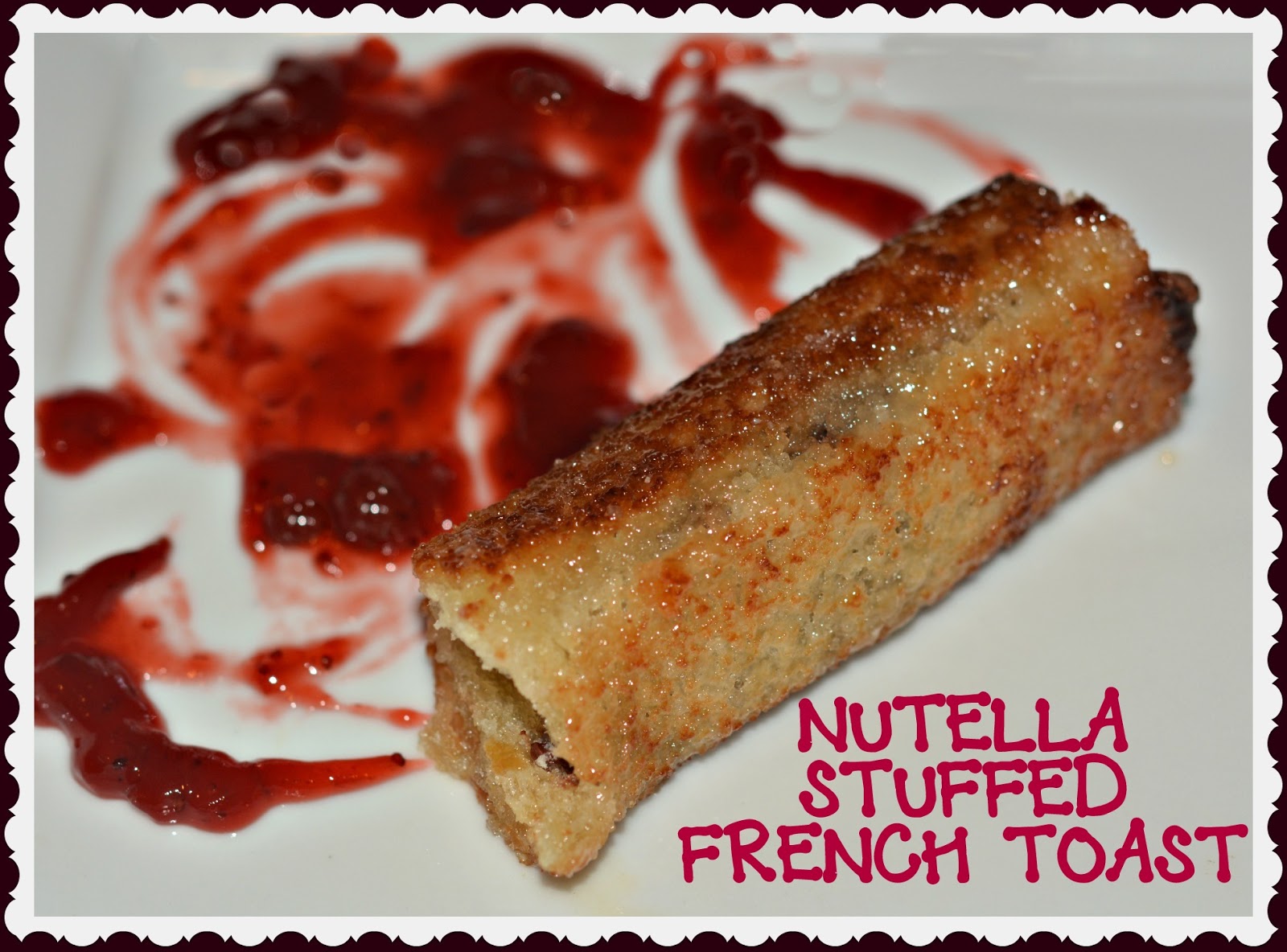 Spread 1-2 tablespoons of Nutella on each slice of bread. Roll it up…jelly roll style.