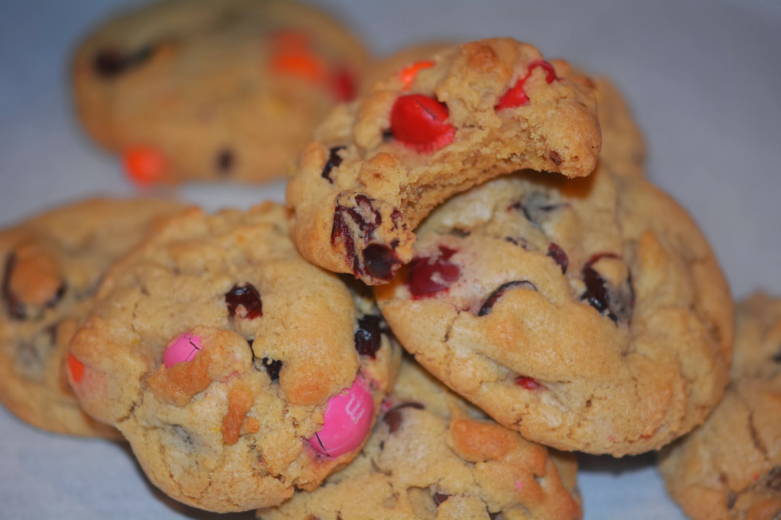 3 cups assorted candy (1 cup Raisinettes, 3/4 cup Milk Duds, 3/4 cup Reese’s Pieces, 1/2 cup Mini M&Ms or regular -I used raspberry)