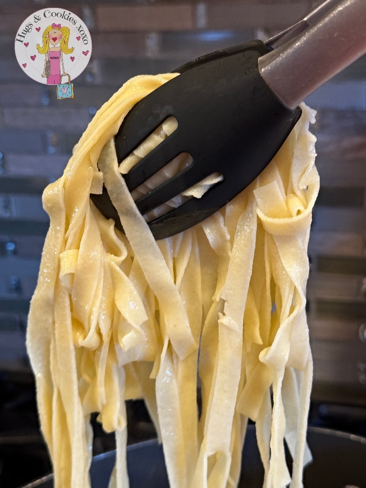 - Can rest on counter covered with a towel for a few hours until cooking time.Cook in boiling water. I cooked half the batch and my noodles were done in 4 mins. Can fridge or freeze noodles if you prefer.
