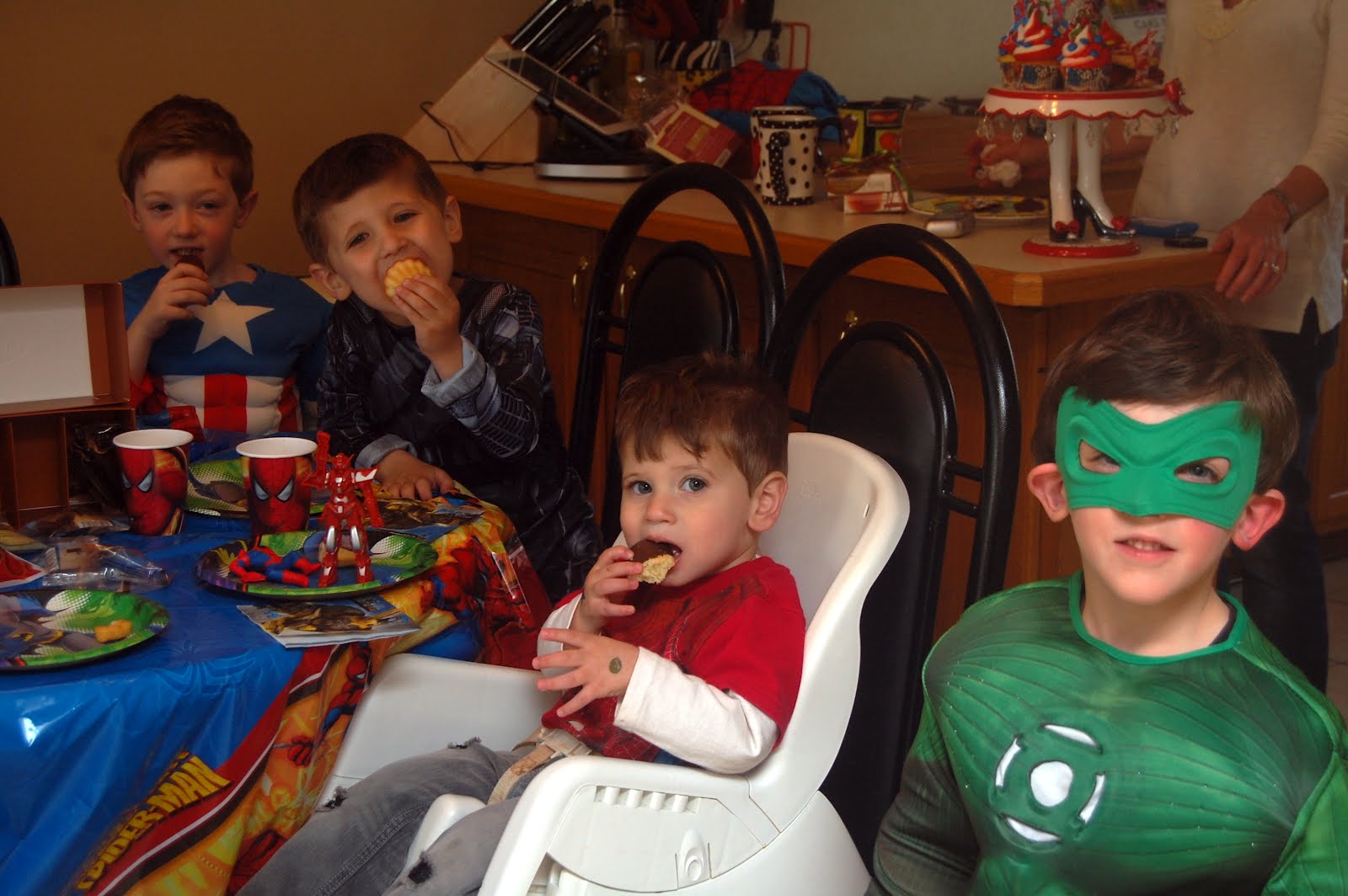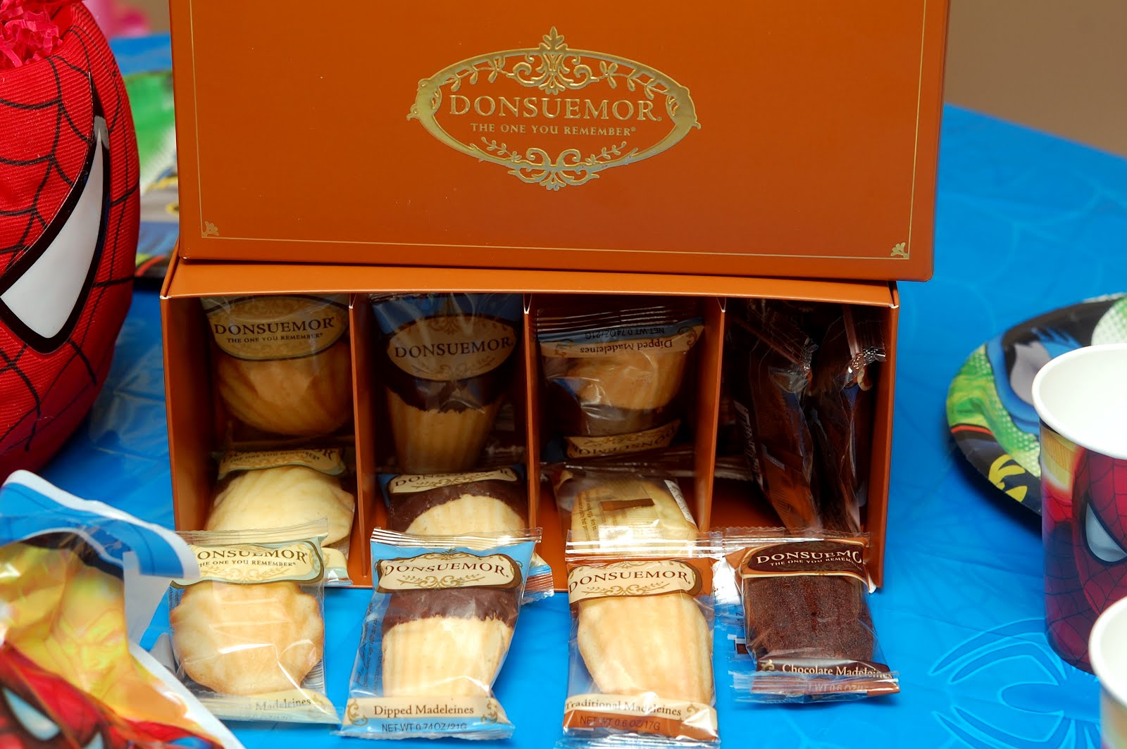 A SPECIAL THANKS TO DONSUEMOR FOR SENDING US MANY DELICIOUS MADELEINES (4 VARIETIES!!! CHOCOLATE, CHOCOLATE DIPPED, ORIGINAL AND LEMON) AND TO DAVIDSON’S TEA FOR THE AMAZING TEA-CHERRIES JUBILEE BEING MY FAVE!!!! MY SONS HAD THEIR 3 BUDDIES OVER FOR THE BEST TEA PARTY EVER…..INCLUDING SUPER HERO COSTUMES, SNACKS AND GOODY BAGS!!!!! CHECK OUT SOME OF OUR FUN PICTURES!!!!