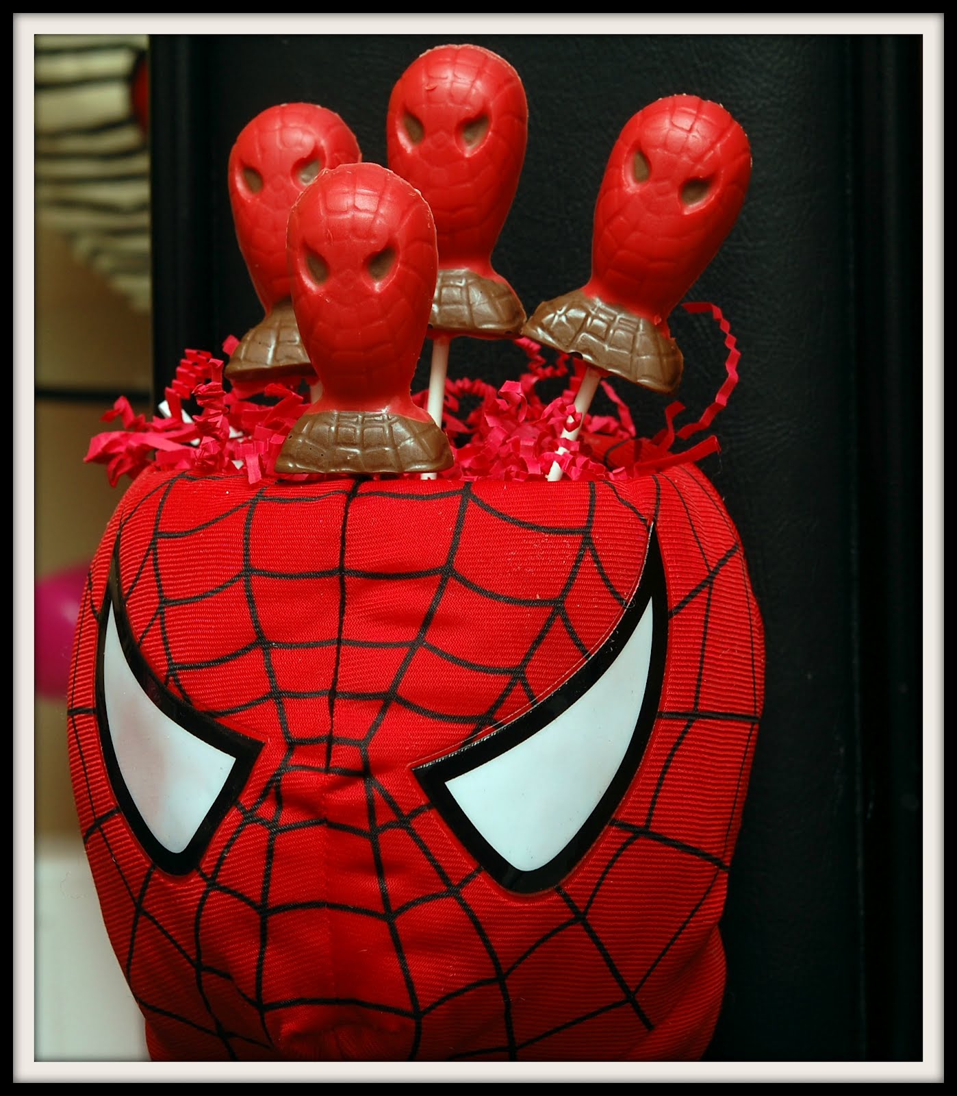 WHAT WOULD A SUPERHERO PARTY BE WITHOUT SOME CHOCOLATE SPIDERMAN POPS?!
